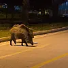 Bodrum'un Konacık Mahallesi'nde caddeye kadar inen domuzlar kimseye aldırış etmeden yiyecek aradı. Ormanlık alandan şehre inen domuz sürüsü vatandaşalar tarafından cep telefonuyla çekildi.