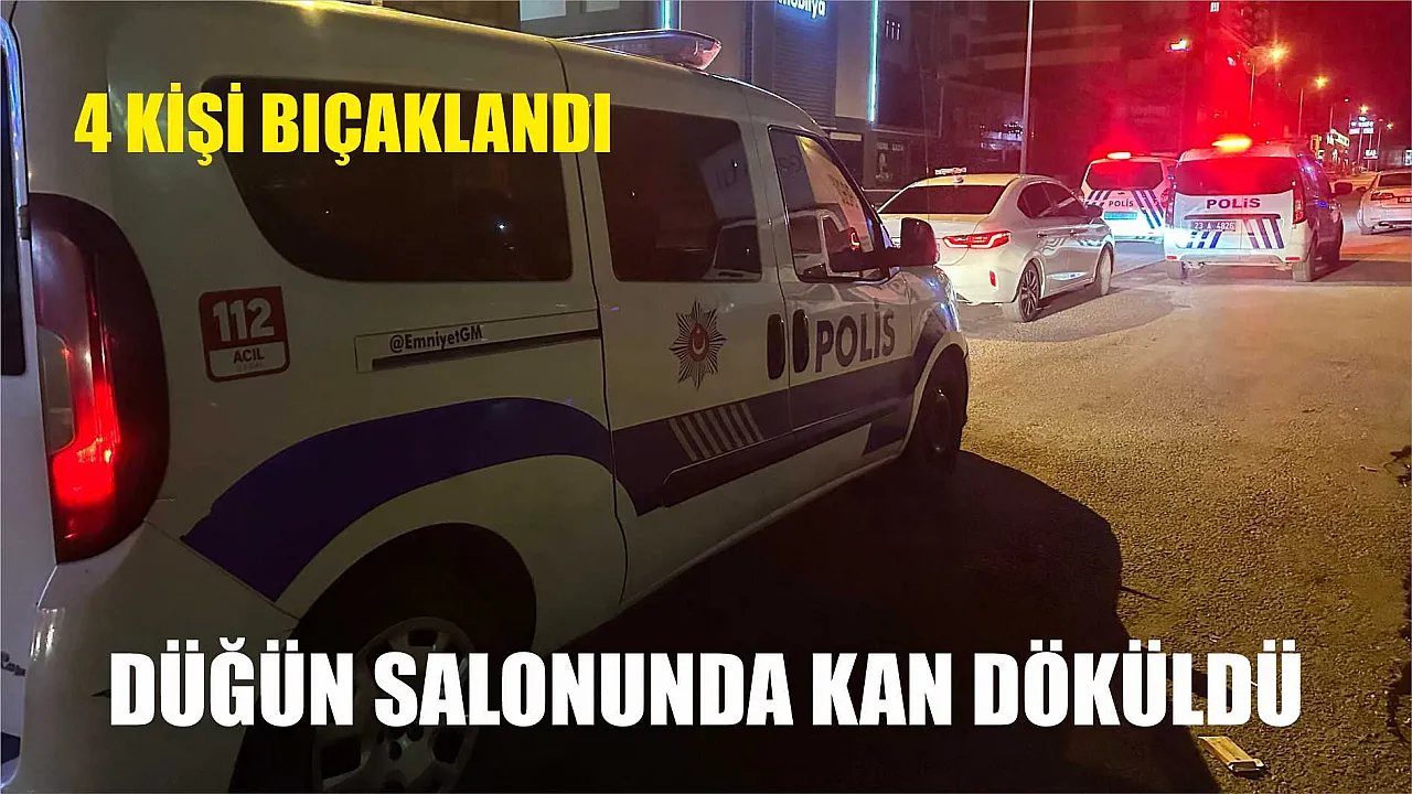 Bir düğün salonunda çıkan bıçaklı kavgada 4 kişi yaralandı.