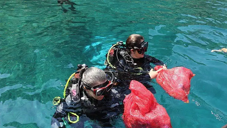 Marmaris'te daha önce hiç dalmamış 40 kadın Dünya Kadınlar Dalış Günü'nde mavi sulara daldı. Dalış eğitmenleri eşliğinde dalan kadınlar, deniz dibinde biriken plastik atıkları da topladı.