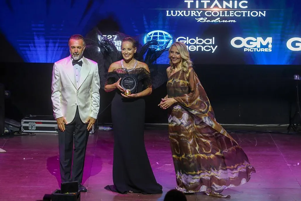 Dünyaca ünlü Amerikalı sinema yıldızı Sharon Stone, Muğla'nın Bodrum ilçesinde düzenlenen gecede Uluslararası İkon Ödülü'nü aldı.