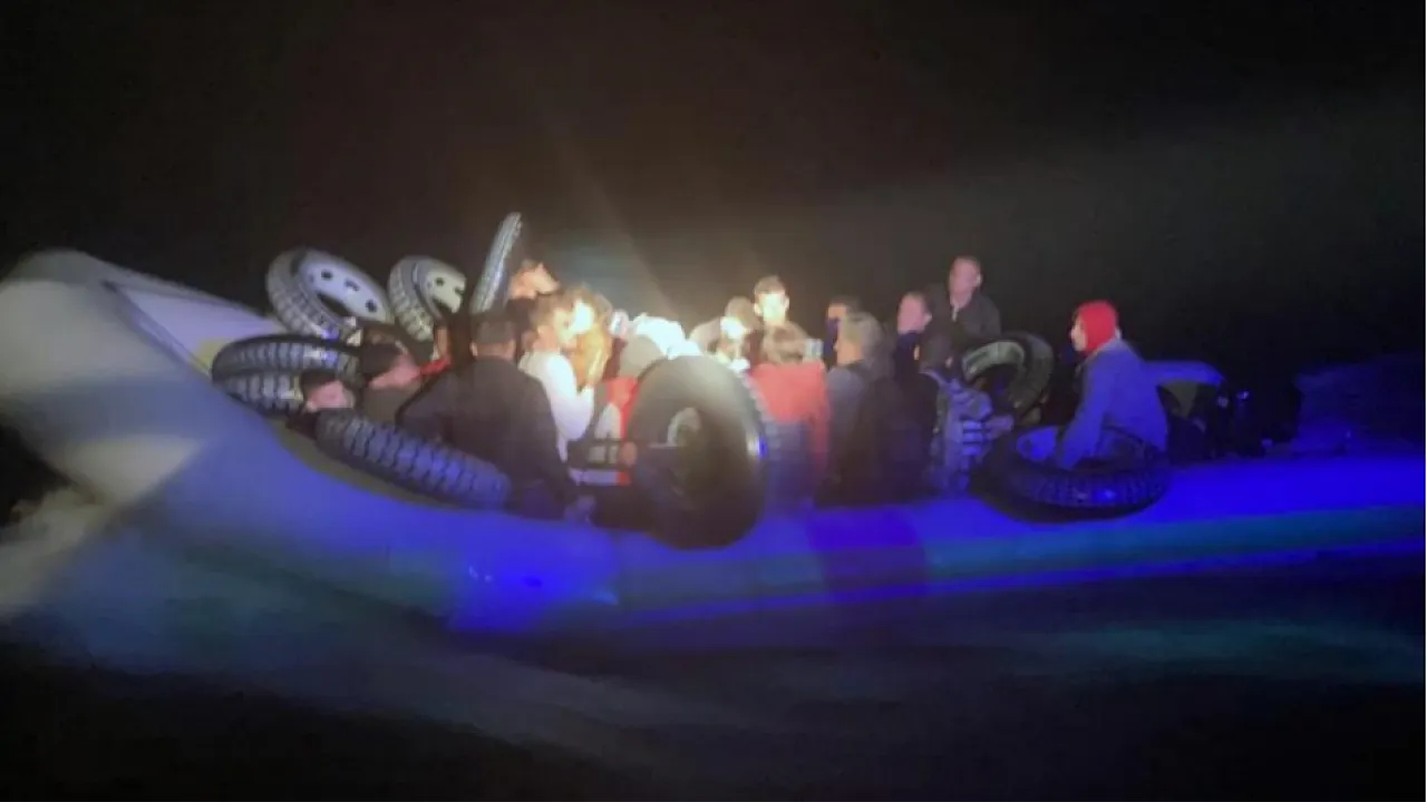 Muğla’nın Fethiye ilçesi açıklarında hareket halindeki lastik bot içinde 42 düzensiz göçmen yakalandı.