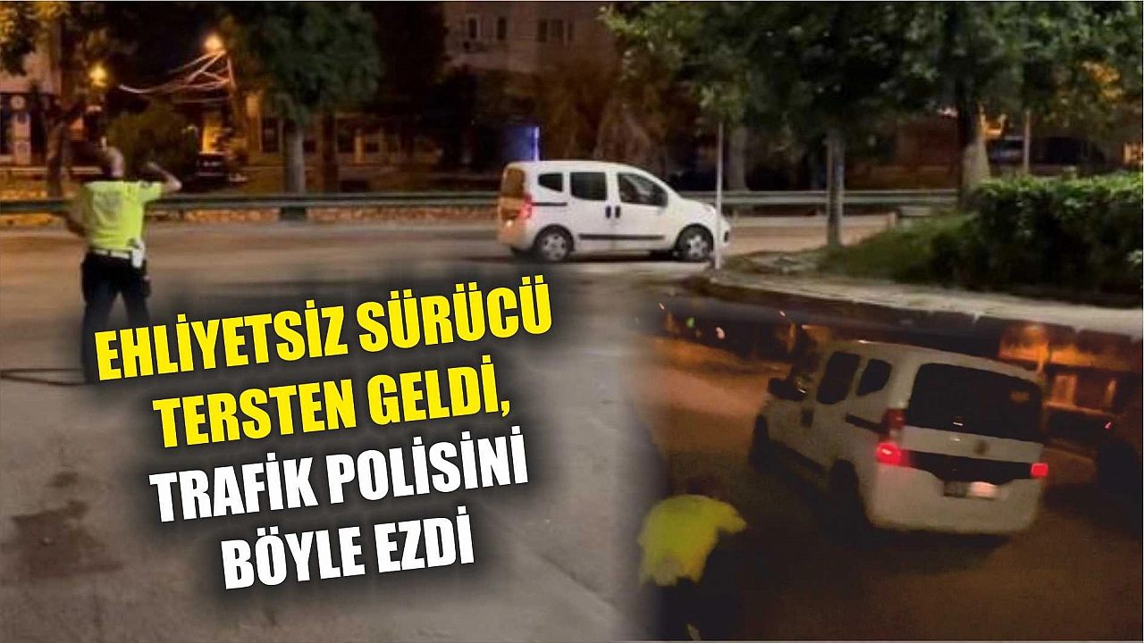 Bursa'da ehliyetine el konulan bir sürücü, ters yönden gelip polislerin kontrol noktasına takıldı. Trafik polisinin dur ihtarına uymayan sürücü trafik polisini ezmeye kalkıştı, kaçtı. Polisin yere düşmesi ve ölümden dönmesi İHA kamerasına yansırken, yakalanan sürücüye 130 bin lira ceza kesildi.