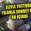 Eliyle tuttuğu yılanla sohbet etti, su içirdi