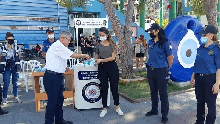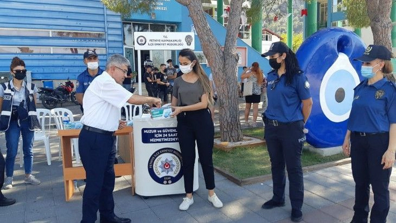Fethiye ilçe Emniyet Müdürlüğü tarafından vaka sayılarının artması nedeni ile Fethiye Özer Olgun Kültür Merkezi önünde maske dağıtımı gerçekleştirdi. Covid-19 nedeni ile maskeler dağıtılıp vatandaşlara bilgilendirmeler yapıldı.