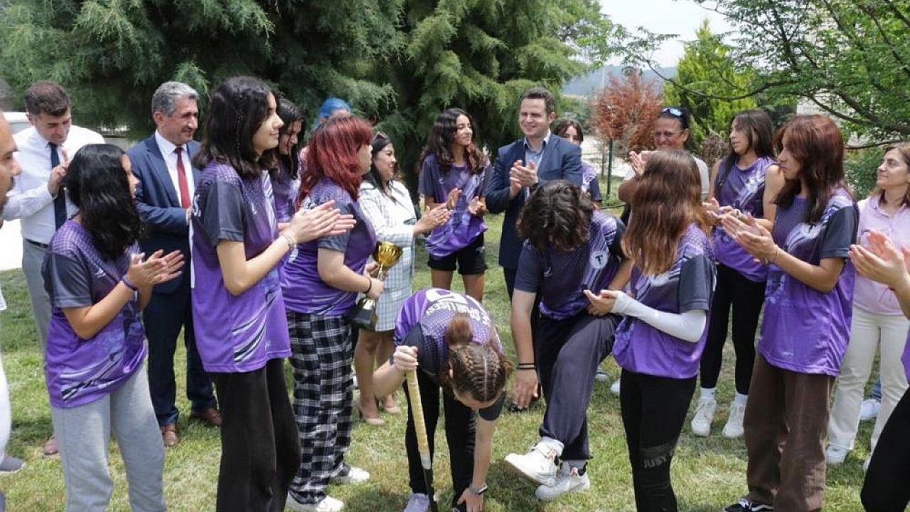 Okul Sporları Hokey Genç Kızlar Türkiye Şampiyonu olan Menteşe Spor Lisesi Kız Hokey Takımıyla bir araya gelen İl Milli Eğitim Müdürü Emre Çay, öğrencilerin kupa sevincine ortak oldu.