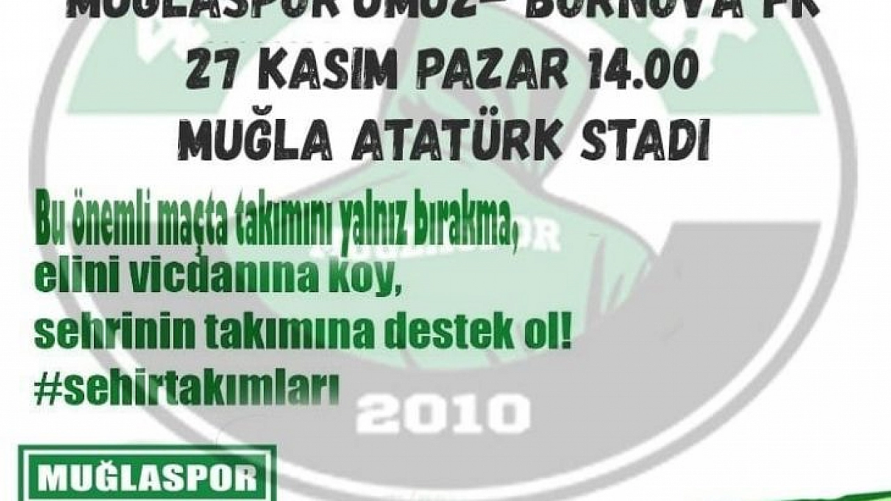 Şampiyonluk parolası ile maçlara hazırlanan Ermaş Muğlaspor Pazar günü kendi sahasında aralarında 4 puan fark olan lider Bornova FK. İle karşılaşacak. Muğla 48 Gençlik taraftarlar grubu tarafından yapılan açıklamada, ”Şehir Bizim Takım Bizim, Destek Bizim" sloganı ile bütün Muğla sevdalılarını Pazar günü saat 14.00 da oynanacak olan Ermaş Muğlaspor ile Bornova FK. maçına davet ettiler.