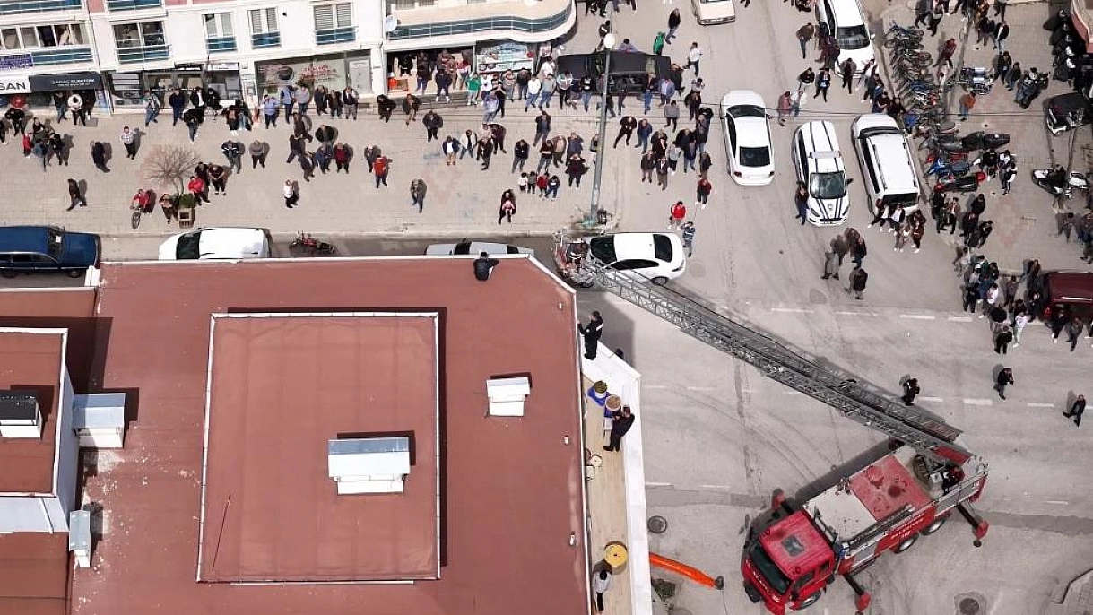 Olay yerine gelen itfaiye ekipleri tarafından bina önüne hava yastığı açılırken polis ekipleri çatıya çıkarak Ali Y.’ yi ikna etmeye çalıştı. Vatandaşların ilgi ile izlediği olayda yaklaşık yarım saat süren konuşma sonrasında ikna edilen Ali Y. polis ekipleri nezaretinde aşağıya indirilerek ifadesi alınmak üzere karakola götürüldü.