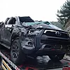 Kazada hurdaya dönen kamyonet, çekici yardımıyla bölgeden kaldırıldı.