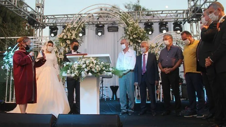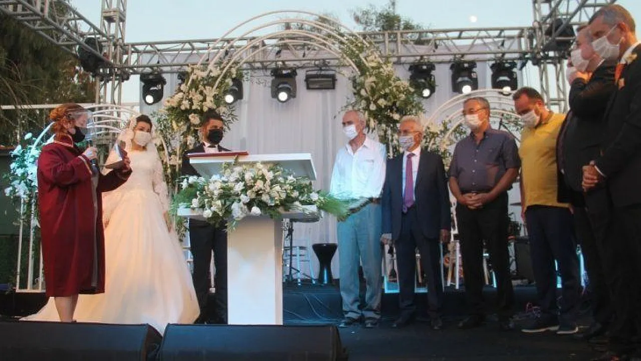 Bahar Beach By Gülizce öncülüğünde gerçekleşen düğün törenine yoğun ilgi oldu. Fethiye Belediye eski Başkanı Behçet Saatcı’nın oğlu Ahmet Saatcı ile Özcan Aybek’in kızı Avukat Cansu Aybek’in düğün töreninde renkli görüntüler de oluştu. Konuklar ateşi ölçülüp, isimleri yazılarak; sosyal mesafe kuralına uygun bir şekilde düğün alanına alındı. İclal-Özcan Aybek ve Nesrin-Behçet Saatcı çiftleri konukları girişte karşılarken; Saatcı davetlilerle yumruk ve dirsekle temas edip, selamlaştı. Takı töreninin yapılmadığı gecede konuklar takılarını çeyiz sandıklarının içine attılar.