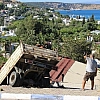 Göltürkbükü Mahallesi Deniz Caddesi üzerinde yaşanan ilginç kazada yokuşta park halinde duran 48 UN 607 aracın freni boşalarak bir anda caddeye çıktı. O esnada 34 FE 1563 plakalı kamyonet sürücüsü Bahattin Karatay otomobile çarpmamak için manevra yaptı. Direksiyon hakimiyetini kaybeden Karatay, yol kenarından bulunan evin çatısından içeriye girdi. Çatıyı ve duvarları kırıp içeri giren kamyonetin içinde bulunan Şoför Karatay ve Ozan Çelik hafif şekilde yaralandı.