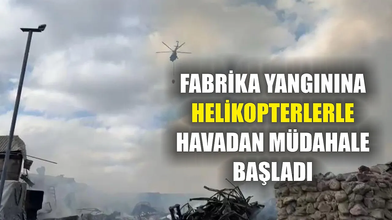 Fabrika yangınına helikopterlerle havadan müdahale başladı