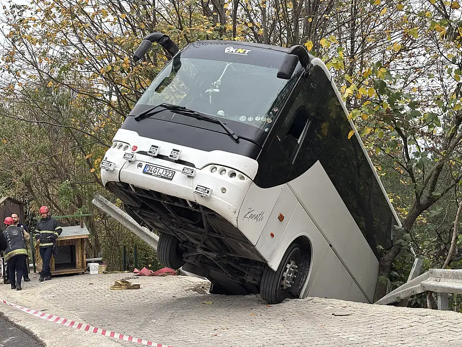 Park halindeyken hareket eden tur otobüsü bariyeri aşıp şarampole düştü. Facianın eşiğinden dönüldüğü kazada yaralanan olmadı.