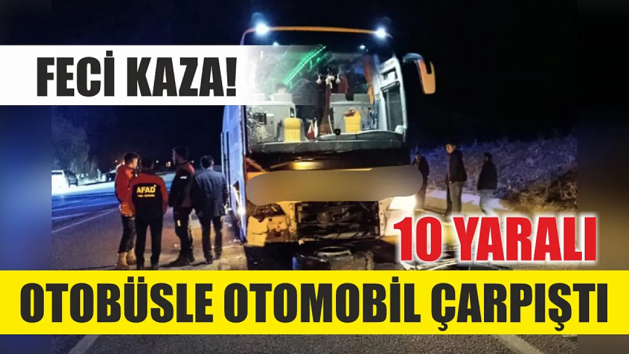 Feci kaza! Otobüsle otomobil çarpıştı, 10 yaralı