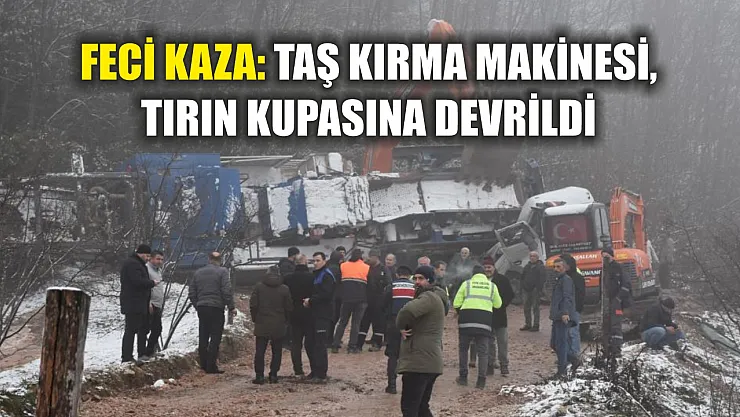 Feci kaza: Taş kırma makinesi, tırın kupasına devrildi