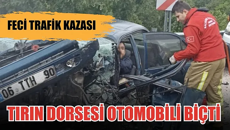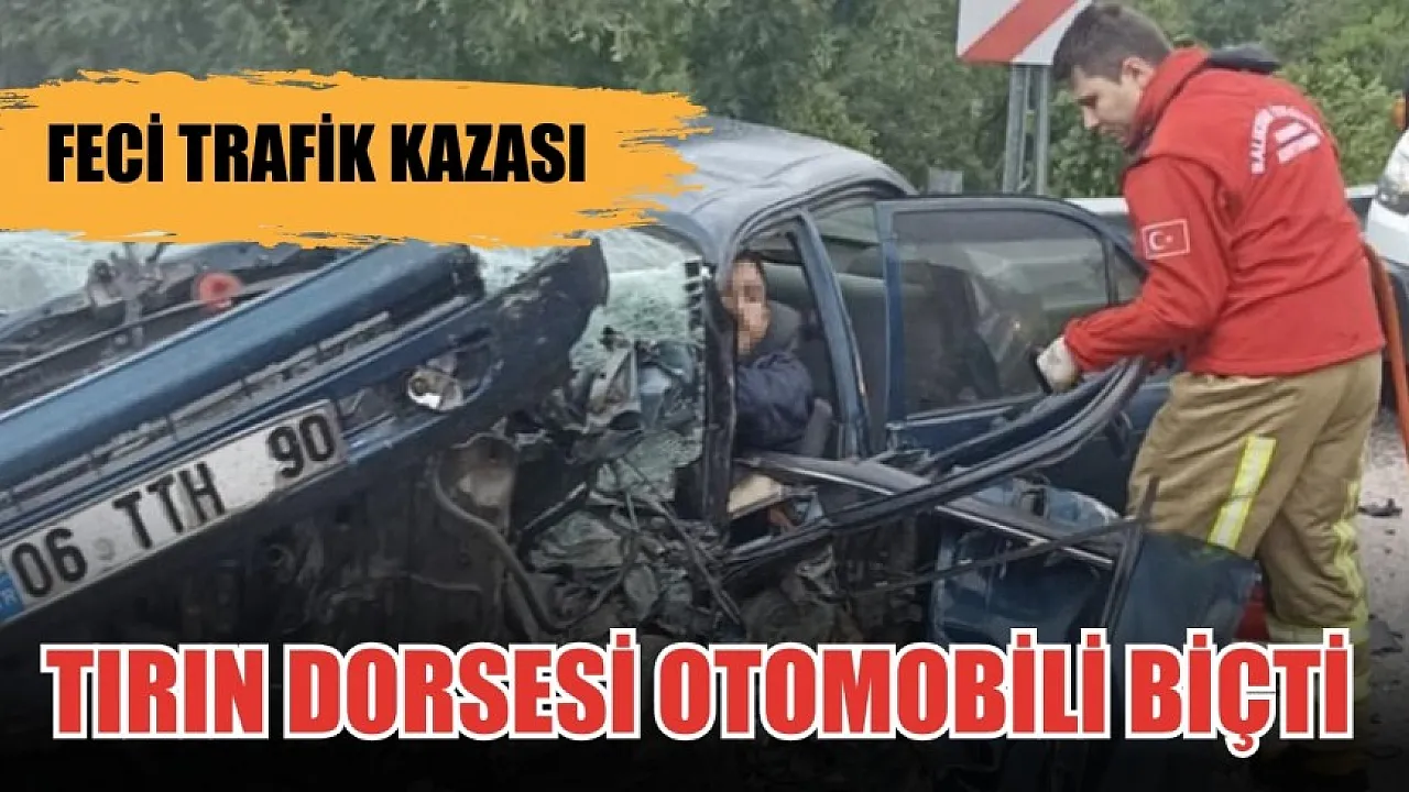 Feci trafik kazası: Tırın dorsesi otomobili biçti
