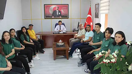 Müsabakalara katılan öğrenciler Köyceğiz İlçe Milli Eğitim Müdürü Kerem Karahan’ı makamında ziyaret etti. İlçe Milli Eğitim Müdürü Kerem Karahan bu başarıda emeği geçen tüm öğretmenleri ve öğrencileri tebrik ederek başarılar diledi.