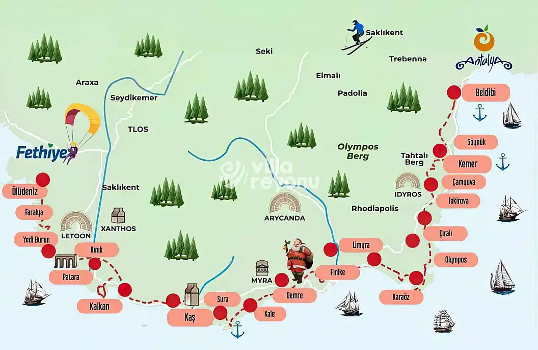 Deniz kıyısından dağ köylerine, antik kentlerden çam ormanlarına uzanan manzaralarıyla Likya Yolu; Ölüdeniz, Patara, Kaş ve Olympos gibi duraklarda hem tarih hem doğa tutkunlarını büyülüyor.