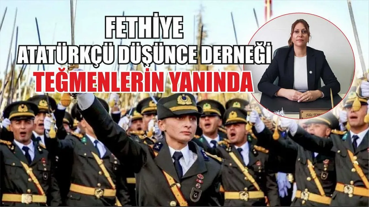 Atatürkçü Düşünce Derneği (ADD) Fethiye Şubesi, Kara Harp Okulu mezuniyet töreninde Ulu Önder Mustafa Kemal Atatürk'e bağlılık yemini ettikleri ve 'Mustafa Kemal'in askerleriyiz' sloganı attıkları için disiplin kuruluna sevk edilen teğmenlerin yanında olduğunu açıkladı. Yapılan açıklamada, 'Atatürkçü Düşünce Derneği, varlık nedeni ve görevi gereği sürecin takipçisidir, teğmenlerimizin yanındadır' denildi.