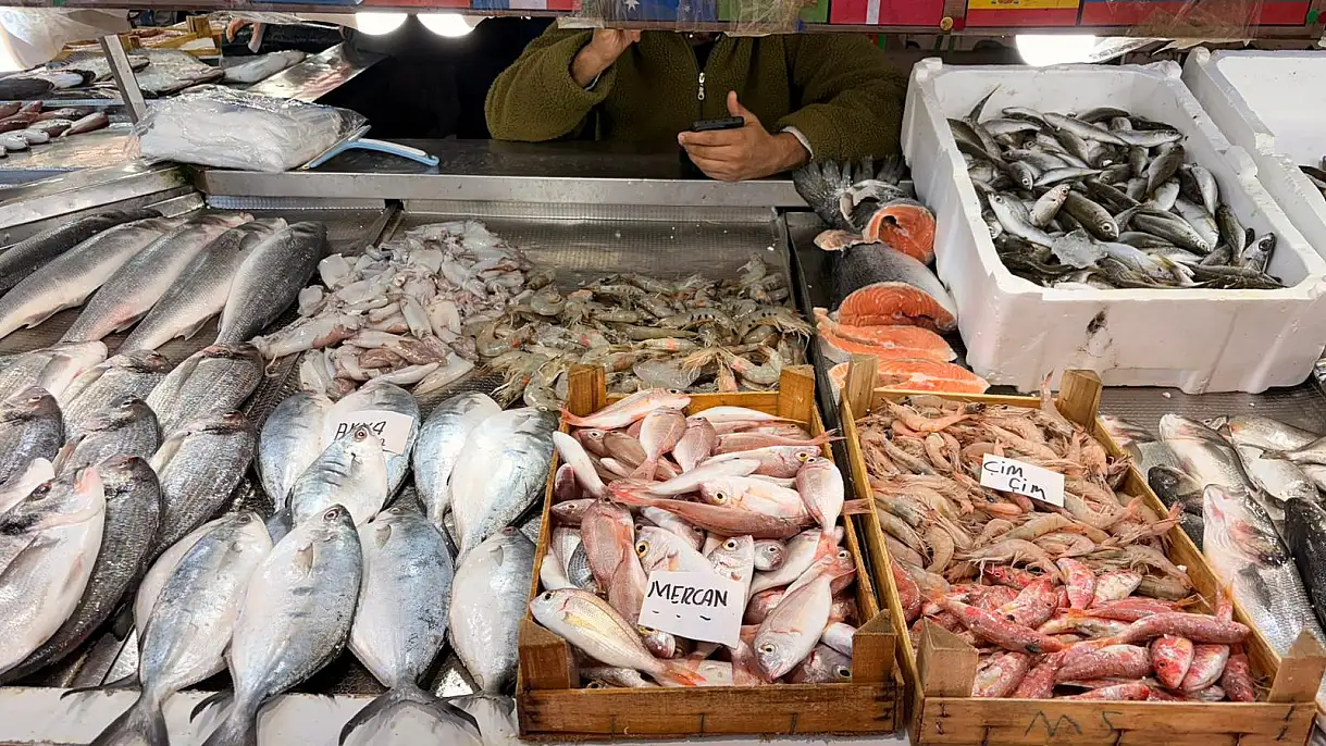 Fethiye Balık Hali'nde tezgâhlarda çeşit bol olsa da fiyatlar türlere göre farklılık gösteriyor.