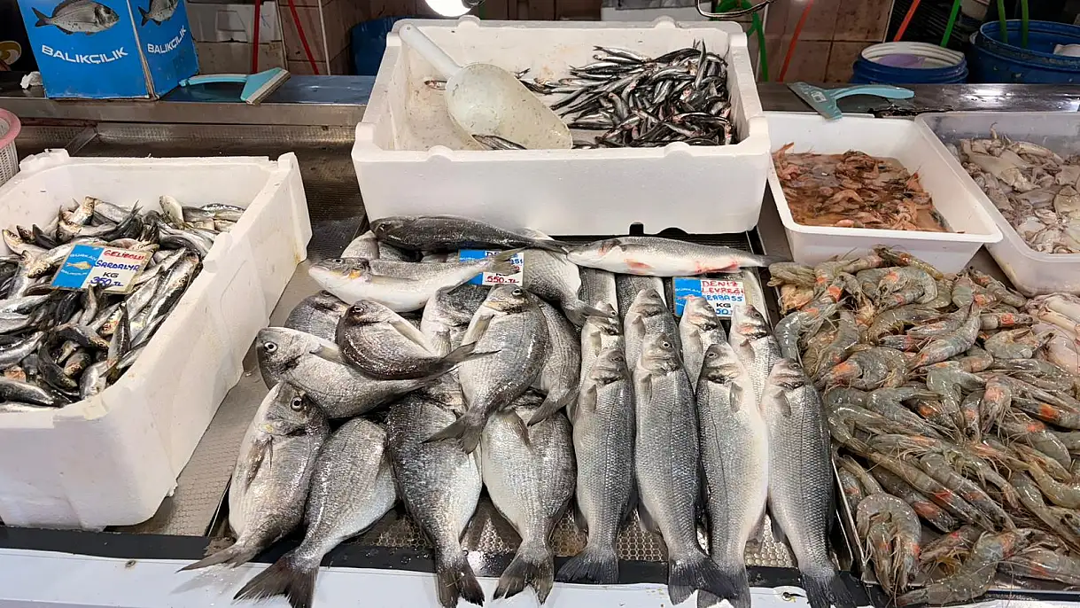 Fethiye Balık Hali'nde tezgâhlarda çeşit bol olsa da fiyatlar türlere göre farklılık gösteriyor.
