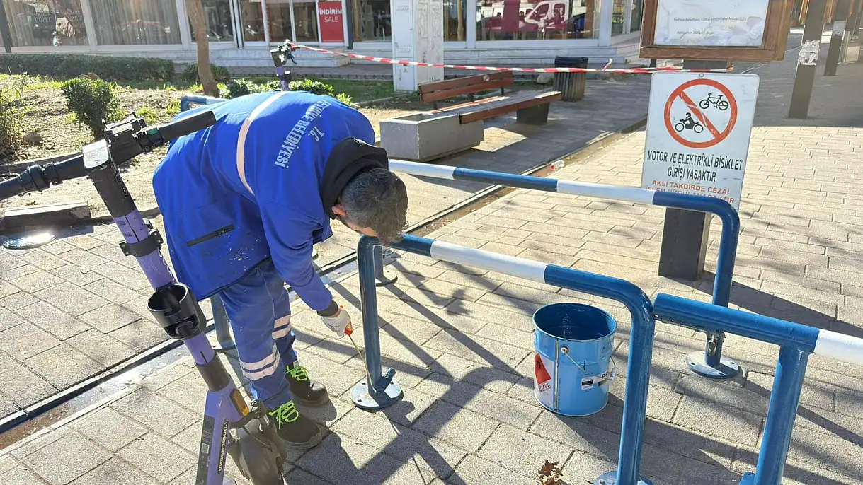 Fethiye'nin araç trafiğine kapalı ve yoğun yaya sirkülasyonunun bulunduğu noktalarda, motosiklet girişlerini engelleyen demir bariyerlerde bakım ve boya çalışması yapıldı.