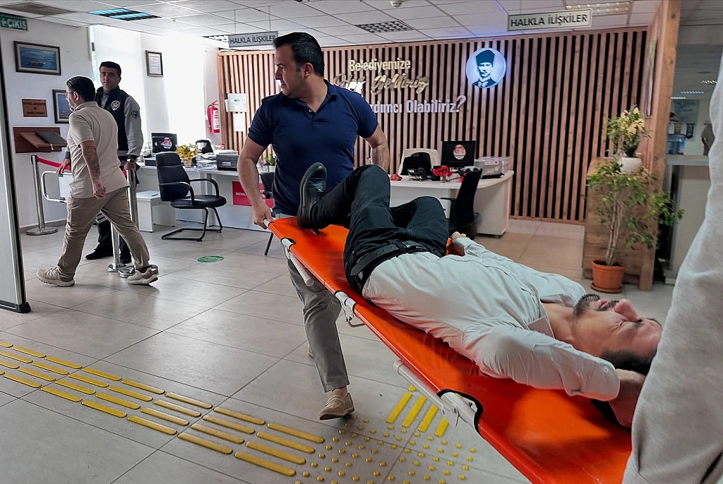 Fethiye Belediyesi önünde, Muğla Büyükşehir Belediyesi İtfaiye Daire Başkanlığı ekipleri tarafından yangın tatbikatı gerçekleştirildi. Tatbikata Fethiye Belediyesi personeli katıldı.