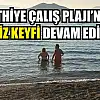 Hava sıcaklıkları düşmeye başlamasına rağmen Fethiye'de güneşli günler yüz güldürüyor. Çalış Plajı'nda yerli ve yabancı bazı tatilciler hâlâ denize girip güneşlenmeye devam ediyor.