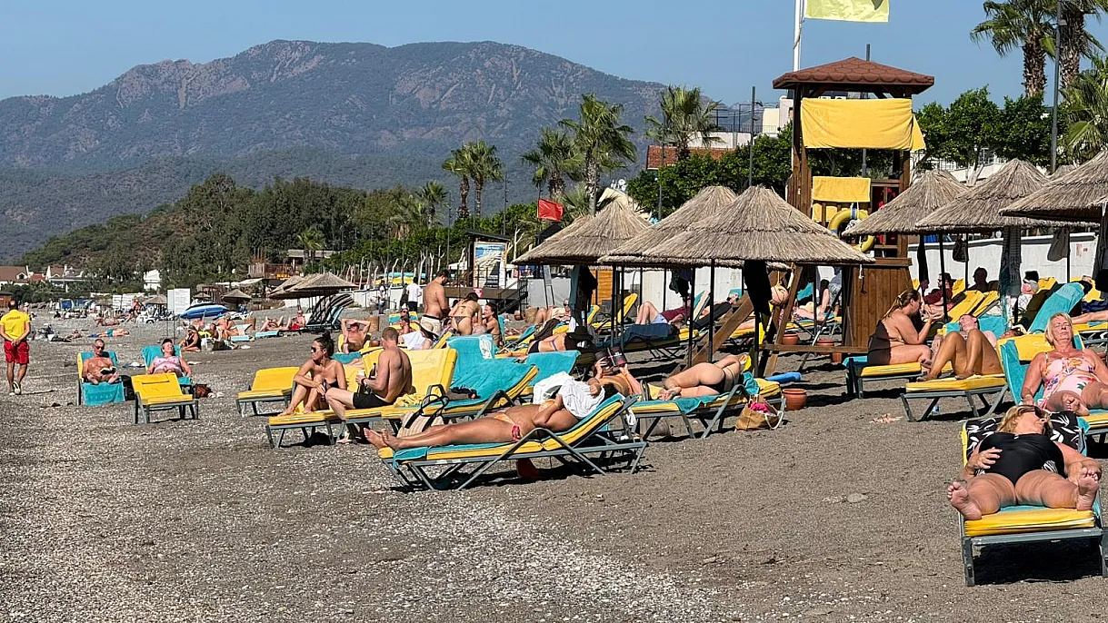 Fethiye Çalış Plajı'nda yabancı misafirler güneşin ve denizin keyfini çıkarıyor