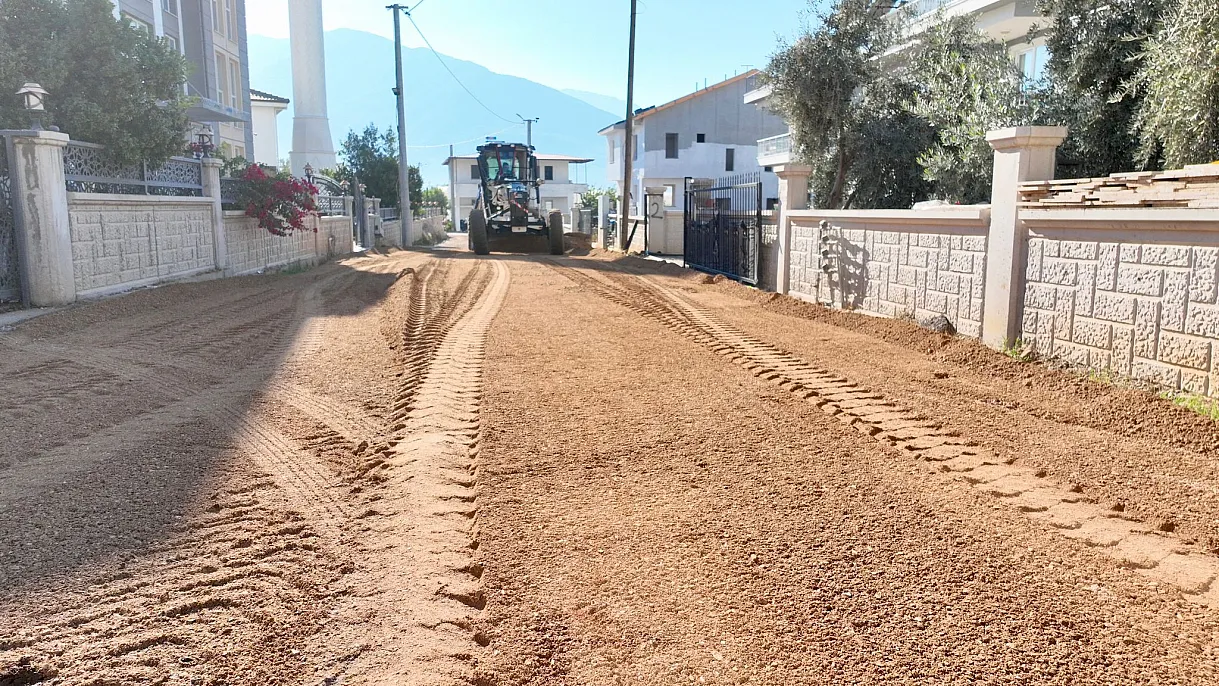Fethiye Belediyesi Fen İşleri Müdürlüğü'ne bağlı asfalt ekibi, Çamköy Mahallesi'ndeki sokaklarda asfalt çalışması gerçekleştiriyor.