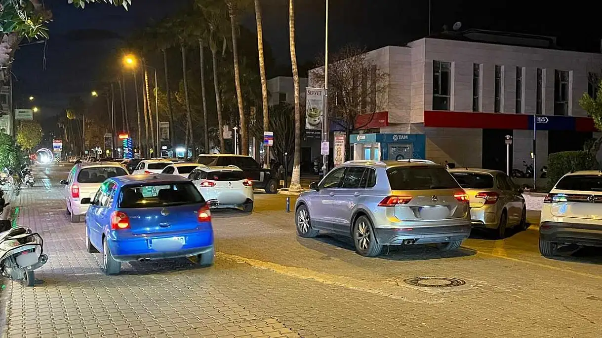 Fethiye Cumhuriyet Mahallesi Çarşı Caddesi'nde çift sıra park sorunu akşam saatlerinde de devam ederken, yoğunluk özellikle iş çıkışı saatlerinde sürücülere zor anlar yaşatıyor.