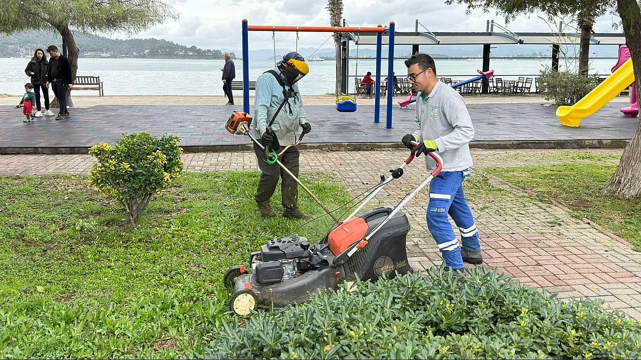 Fethiye Belediyesi Park ve Bahçeler Müdürlüğü ekipleri, 2. etap sahil bandında çevre düzenlemesi kapsamında çim kesim çalışmalarını sürdürüyor.