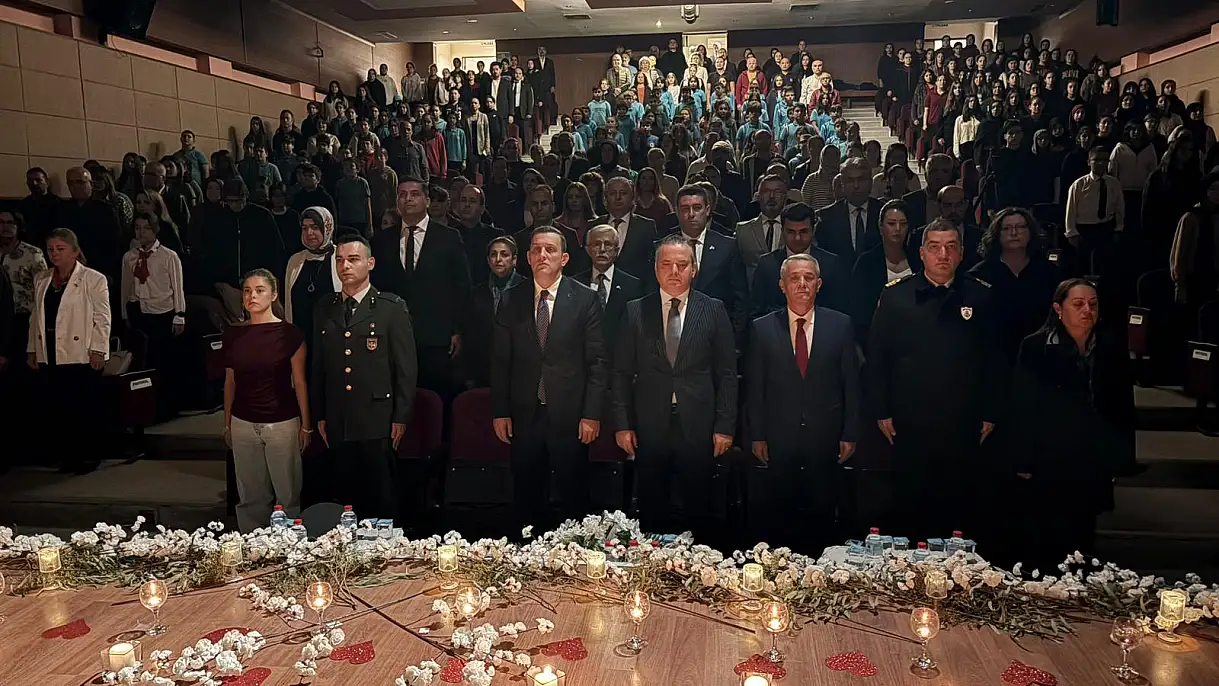 Fethiye'de 24 Kasım Öğretmenler Günü, Şehit Sümer Deniz Kız Anadolu İmam Hatip Lisesi Konferans Salonu'nda düzenlenen anlamlı ve yoğun katılımlı bir programla kutlandı. Kutlama programına Fethiye Kaymakamı Fatih Akkaya başta olmak üzere İlçe Milli Eğitim Müdürü Faruk Kaya, protokol üyeleri, okul yöneticileri, öğretmenler, öğrenciler ve veliler geniş bir katılım sağladı.