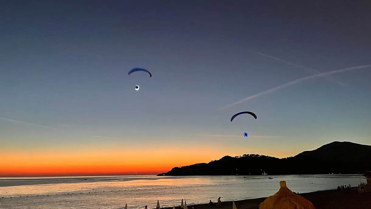 Fethiye’de bu yıl 24. kez düzenlenen Uluslararası Ölüdeniz Hava Oyunları Festivali, adrenalin dolu etkinlikleri ve muhteşem görselliğiyle tüm coşkusuyla devam ediyor. Yüzlerce yerli ve yabancı katılımcıyı bir araya getiren festivalin ikinci gününde, ışıklı senkronize akrobasi gösterileriyle gökyüzü renklere büründü. Parlayan paraşütlerle yapılan gösteriler, Ölüdeniz sahilinde toplanan kalabalığın nefesini keserken, ışık ve duman efektleriyle büyüleyici bir atmosfer oluşturuldu.