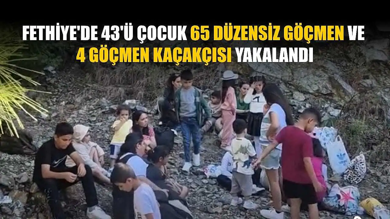 Muğla'nın Fethiye ilçesinde yasa dışı yollardan yurt dışına çıkış hazırlığında olan 43'ü çocuk toplam 65 düzensiz göçmen ve 4 göçmen kaçakçılığı şüphelisi yakalandı.