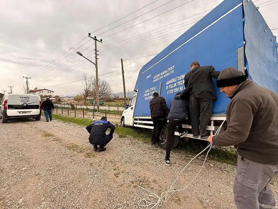 Fethiye'de Çalıca–Esenköy yolunda nakliye aracı refüje düştü