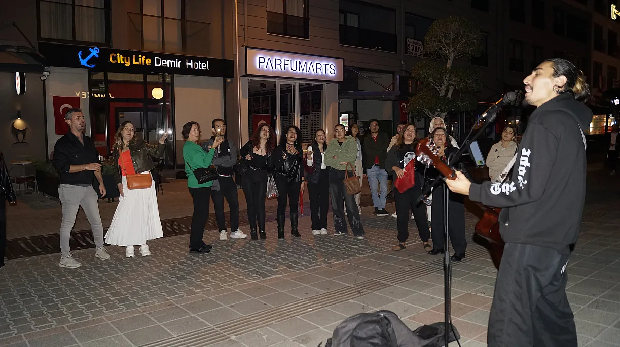 Cumhuriyet Bayramı kutlamaları sırasında Fethiye'nin Dispanser Sokak'ında bir amatör sanatçı, kendi çapında sergilediği performansla dikkat çekti. Sokakta yürüyüş yapan vatandaşlar, sanatçının seslendirdiği birkaç parça ile keyifli anlar yaşadı.
