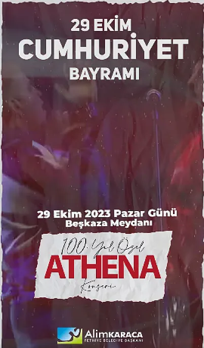 Fethiye Belediyesi tarafından, 29 Ekim Cumhuriyet Bayramı etkinlikleri kapsamında Athena konseri düzenlenecek.