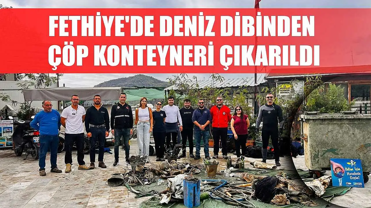 Muğla'nın Fethiye ilçesinde düzenlenen etkinlikte dalgıçlar deniz dibinden atıkların yanı sıra çöp konteyneri çıkardı.