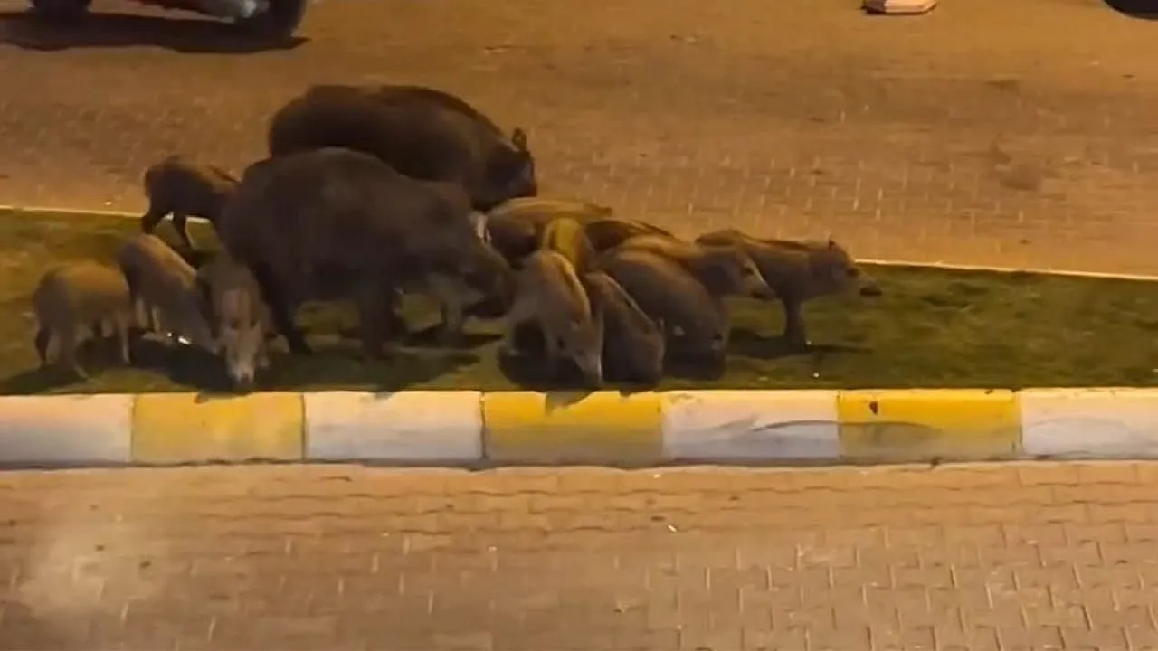 Fethiye'de yiyecek arayan domuzlar, şehre indi. Çevredeki dağda yiyecek bulamayan yaban domuzları, aç kalınca şehir merkezine indiler. Vatandaşlar, domuzları cep telefonlarıyla görüntüledi.