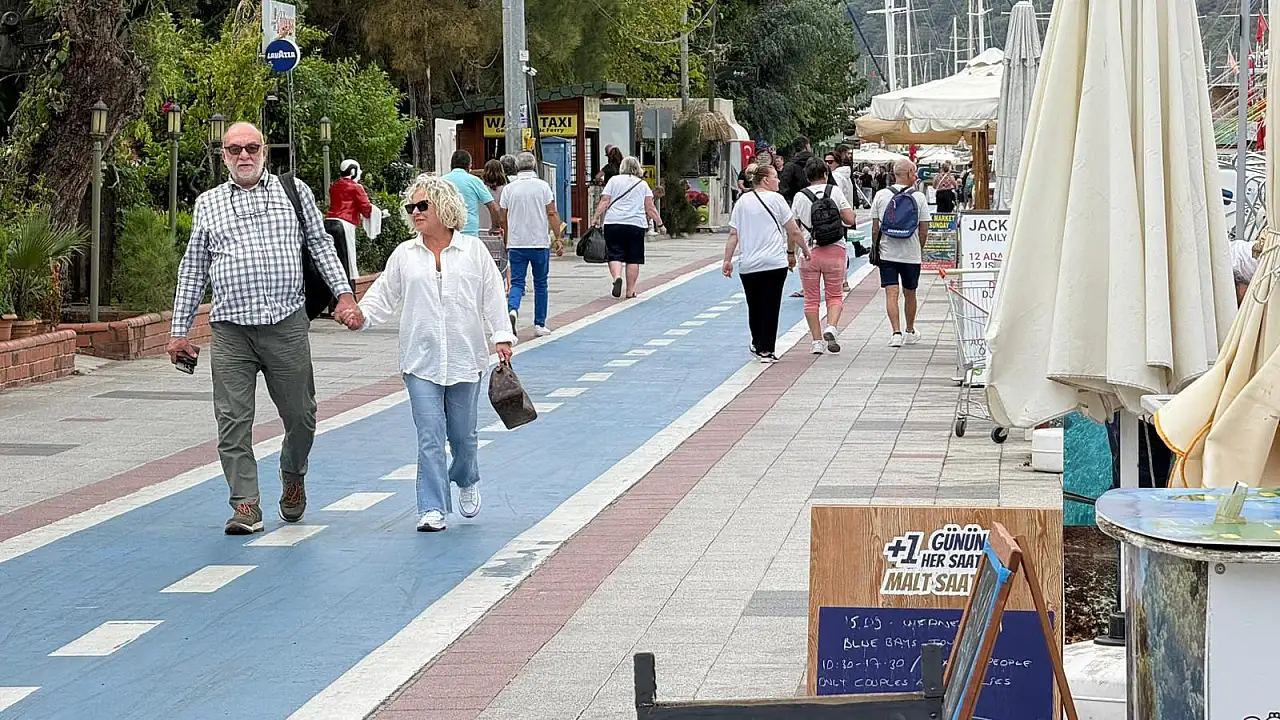 Muğla'nın Fethiye ilçesinde ekim ayının sonlarına yaklaşılırken yabancı turist yoğunluğu devam ediyor. Ziyaretçiler, Beşkaza Meydanı, Kordon ve Dispanser Sokak'ta yoğunluk oluşturdu.