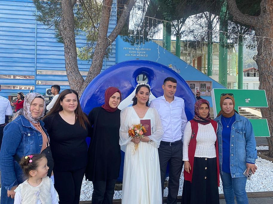 Evlenmek için bir araya gelen çiftlerin yanı sıra akrabaları ve sevenleri de Fethiye Özer Olgun Kültür Merkezi’nde çiftin yanlarında olunca Kültür Merkezi önünde yoğunluk oluşturdu. Fethiye Özer Olgun Kültür Merkezi, evlilik tarihlerini unutulmaz kılmak isteyen çiftlerin yoğun katılım oluşturmasıyla beraber en kalabalık günlerinden birini yaşadı.