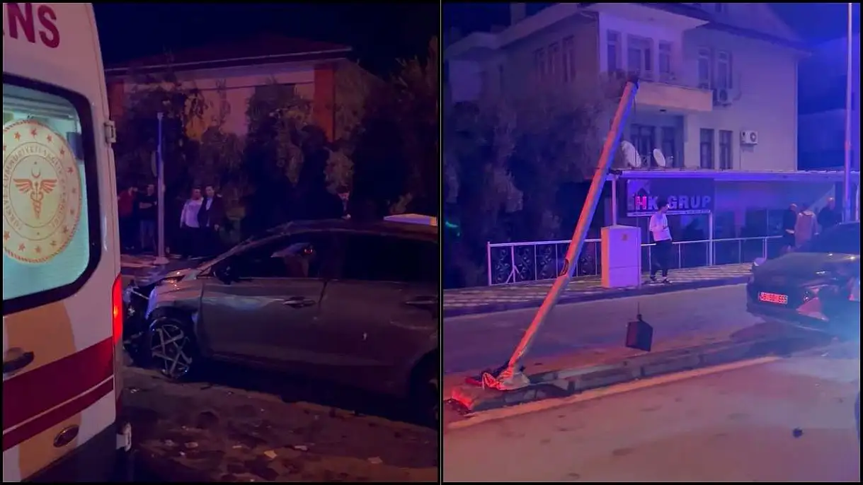 Fethiye'de feci kaza, araç ışıklara çarparak yan yattı