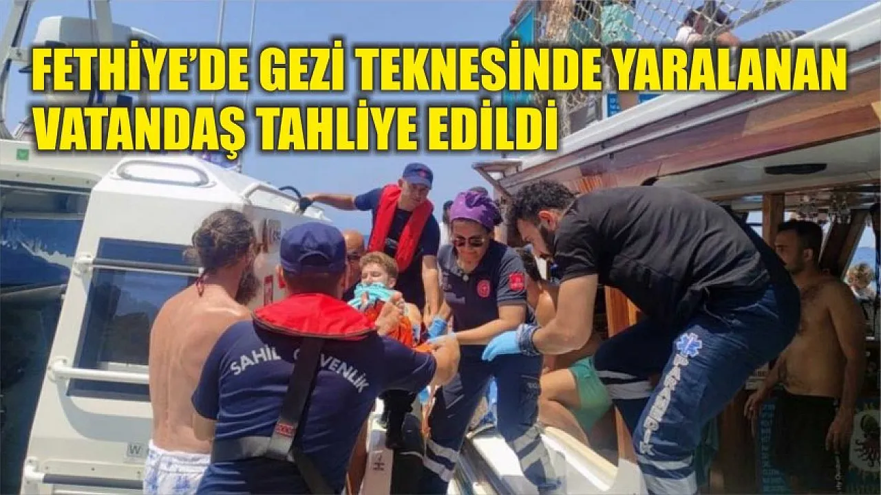 Muğla'nın Fethiye ilçesi açıklarında seyreden gezi teknesinde yaralanan vatandaş Sahil Güvenlik ekiplerince tıbbi tahliyesi gerçekleştirildi.