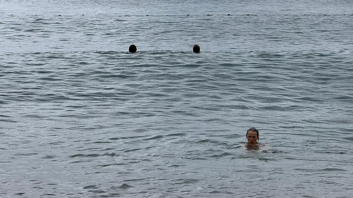 Fethiye'de sabah saatlerinden itibaren etkili olan gök gürültülü sağanak yağışa rağmen, Çalış Plajı'nda tatil yapan yabancı turistler yağmura aldırış etmeden denize girdi.