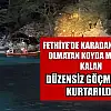 Fethiye’de karadan ulaşım olmayan koyda mahsur kalan düzensiz göçmenler kurtarıldı