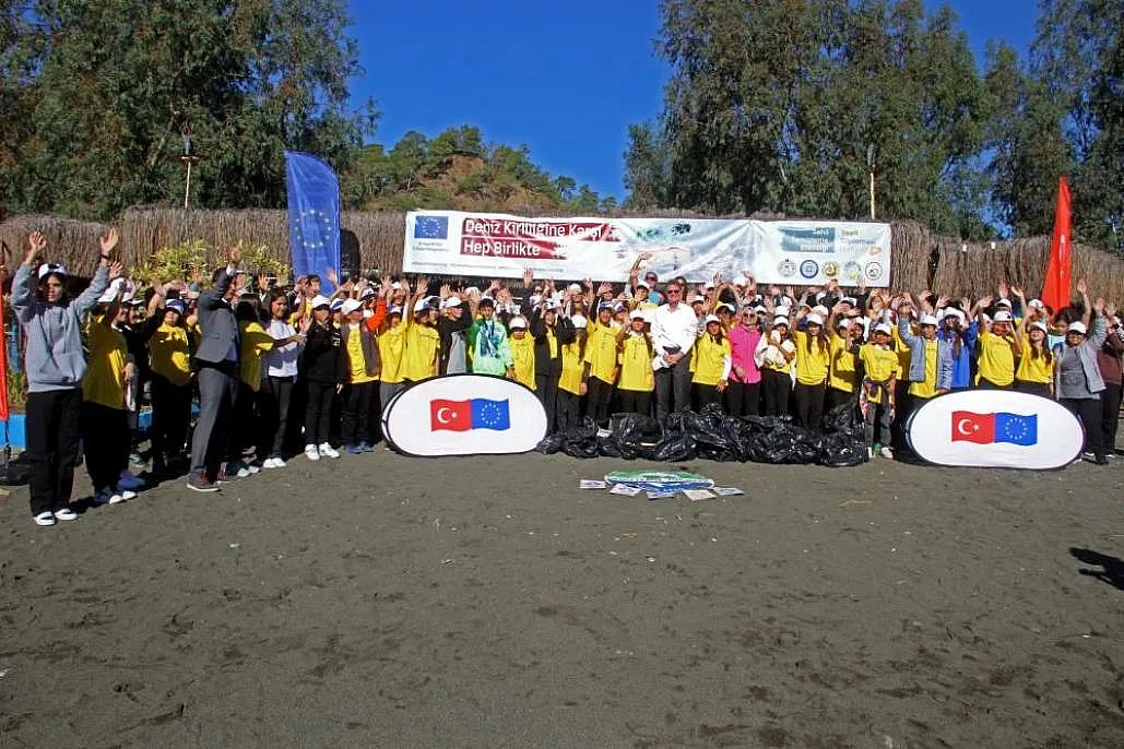 Avrupa Birliği Türkiye Delegasyonu, 'Yeşil Diplomasi Haftası' çerçevesinde düzenlediği etkinliklerde, deniz kirliliği ile mücadele için 'mavi dedektifler' ve öğrenciler Muğla'nın Fethiye ilçesinde Muğla Valiliği ve Muğla Büyükşehir Belediyesi'nin katkılarıyla plaj temizliği yaptı.
