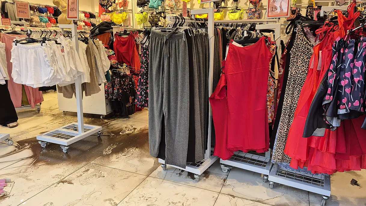 Muğla'nın Fethiye ilçesinde öğle saatlerinde etkisini çokça gösteren sağanak yağış sonrası dükkanı su basan esnaflar temizliğe başladı.