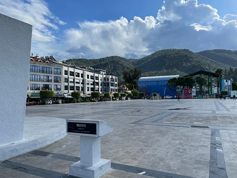 Fethiye'de soğuk hava Beşkaza Meydanı'nı sessizliğe bürüdü