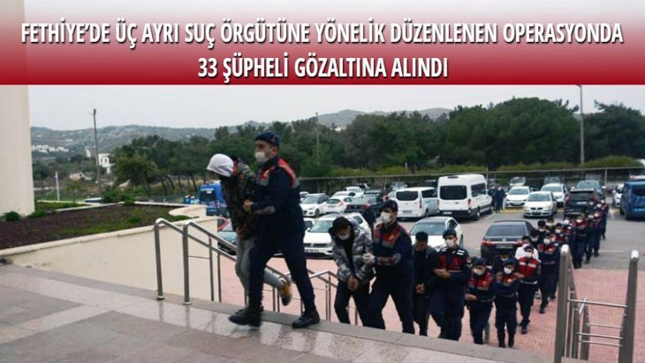 - Fethiye'de üç ayrı suç örgütüne yönelik düzenlenen operasyonda 33 şüpheli gözaltına alındı