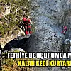 Fethiye'de uçurumda mahsur kalan kedi kurtarıldı